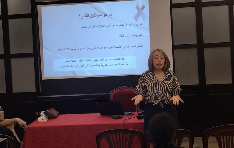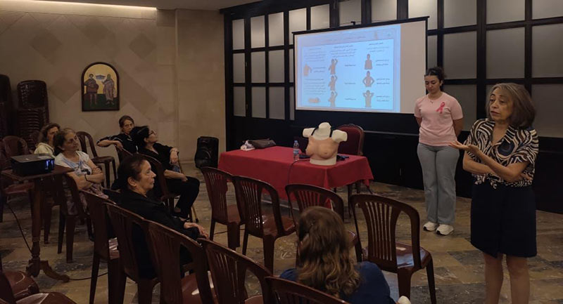 Students from the Nursing Program at the Faculty of Health Sciences at the University of Balamand organized a breast cancer awareness campaign to highlight the importance of early detection and its role in improving recovery chances. The event was held in the church hall in Brummana, bringing together women from the parish and neighboring parishes who demonstrated strong engagement and genuine interest in the health cause.